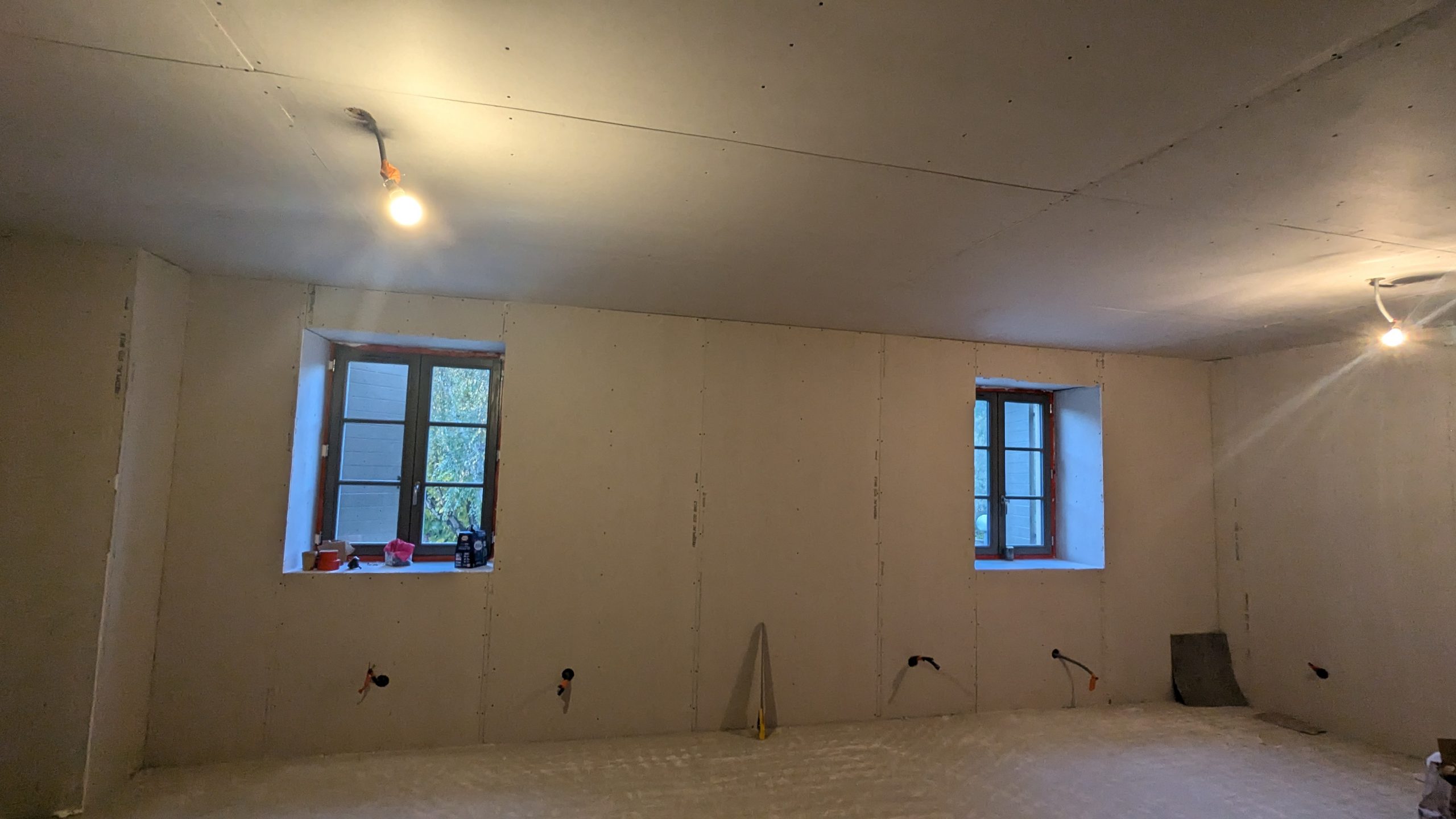 On s’attaque aux contours des fenêtres, cette fois-ci le placo est vraiment terminé !