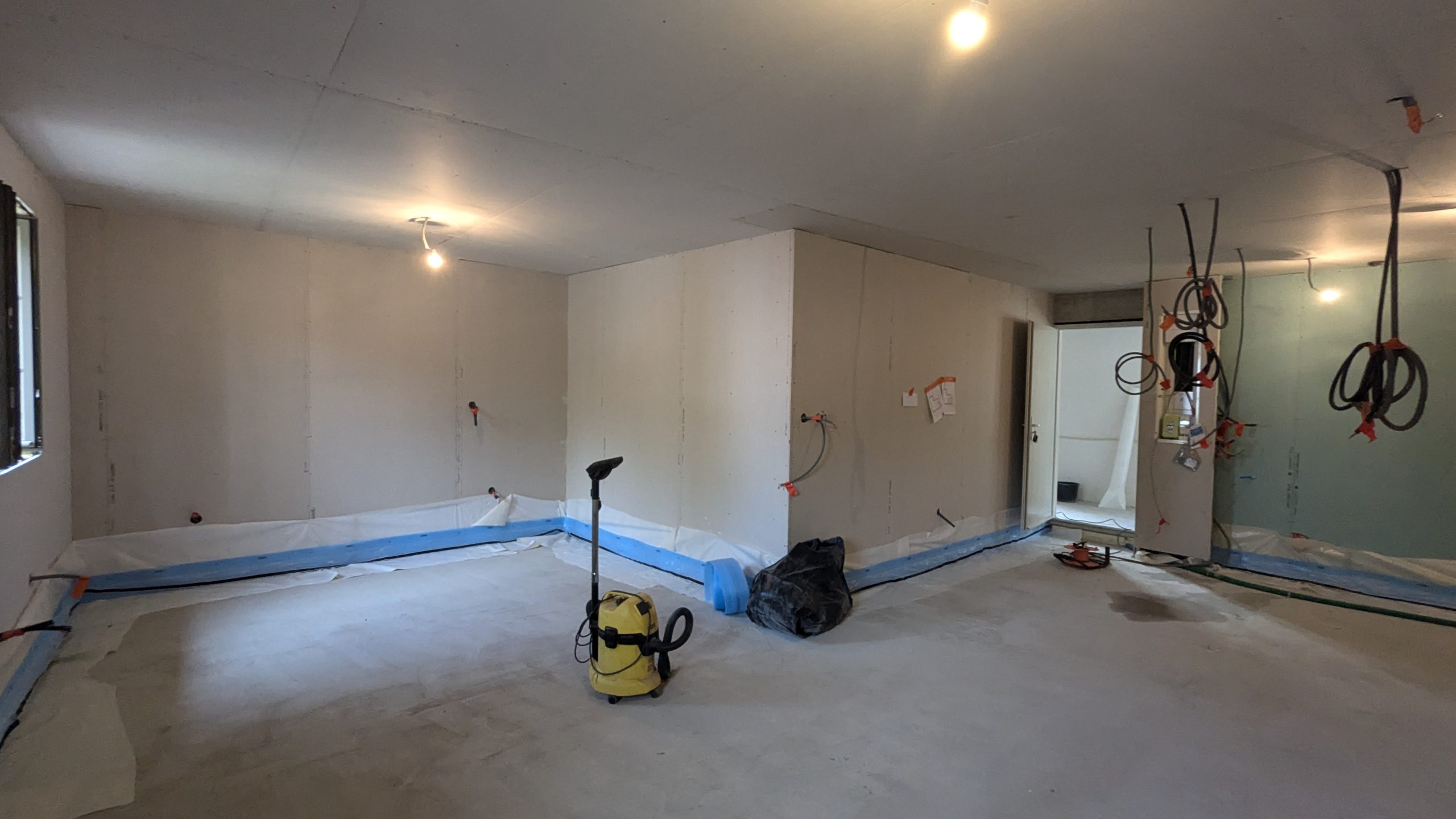 Ce samedi, on termine toute la périphérie de l’appartement, et on se lance dans la plomberie. Heureusement, tout est concentré dans un coin de l’appart…
