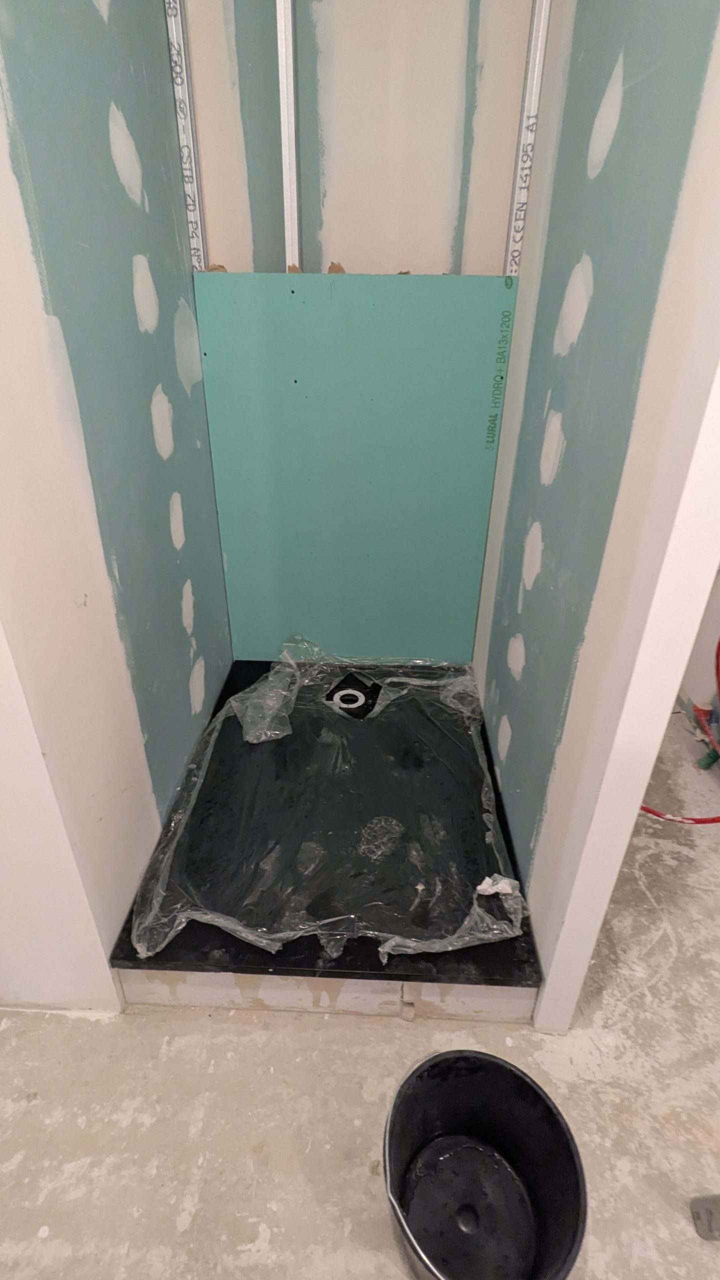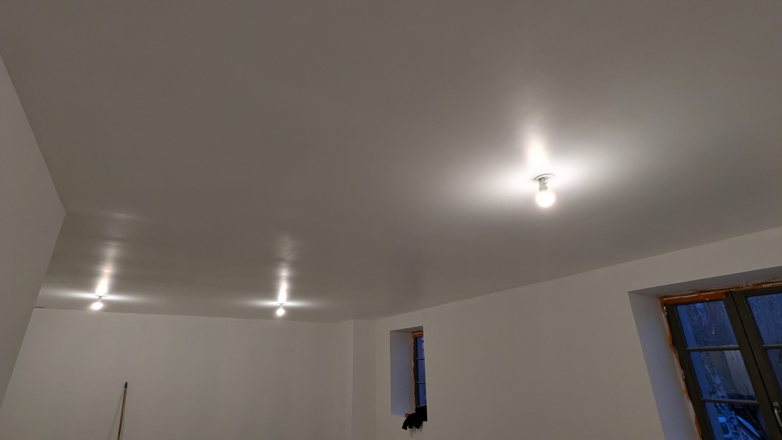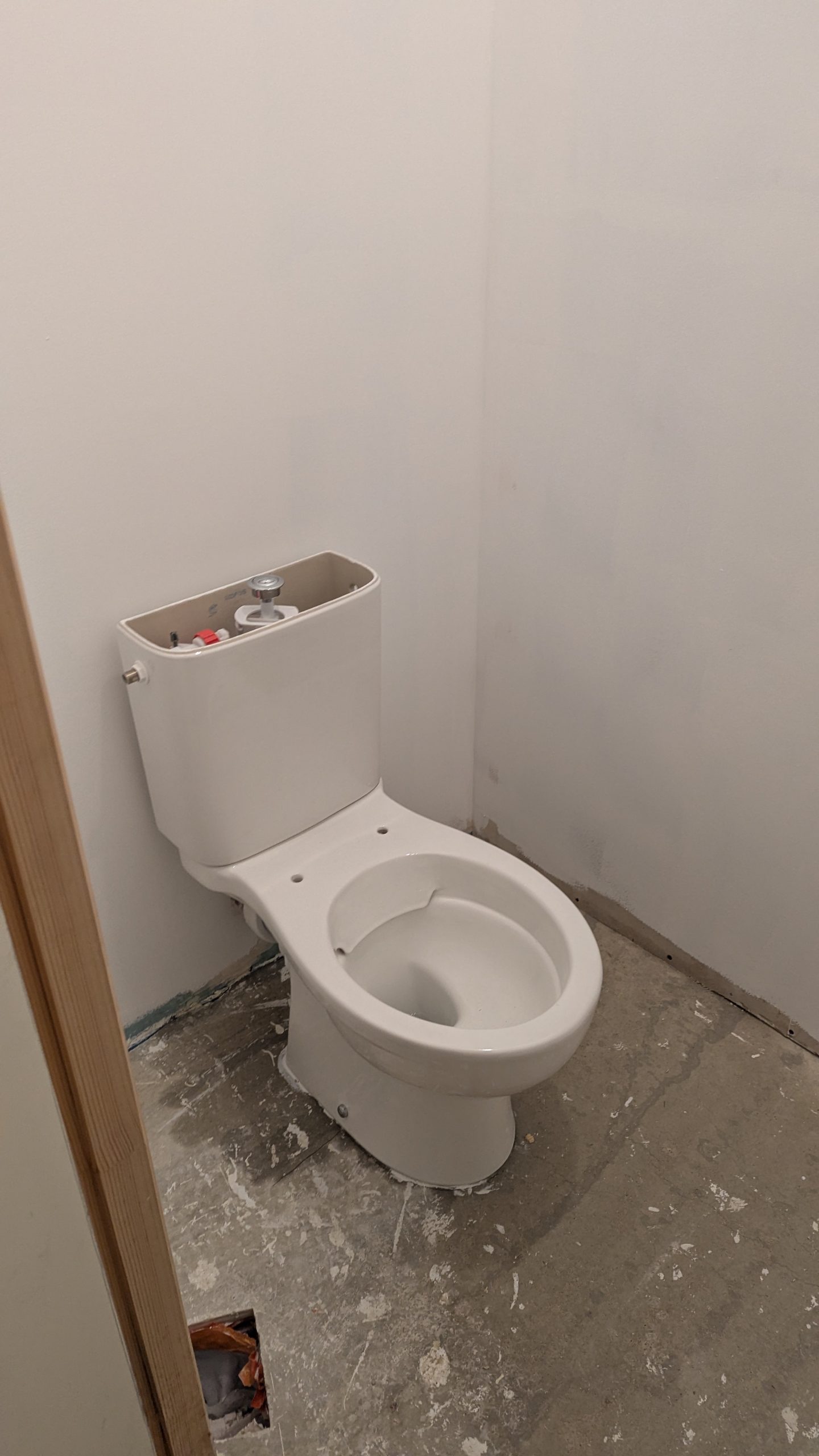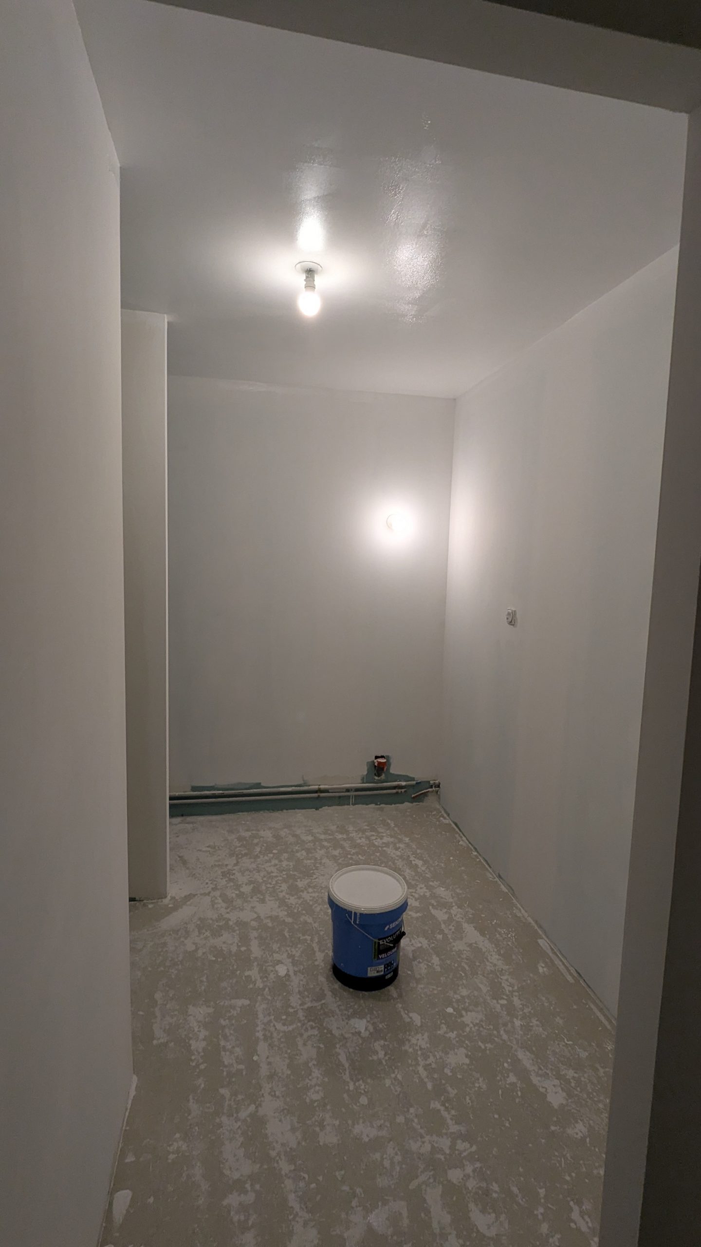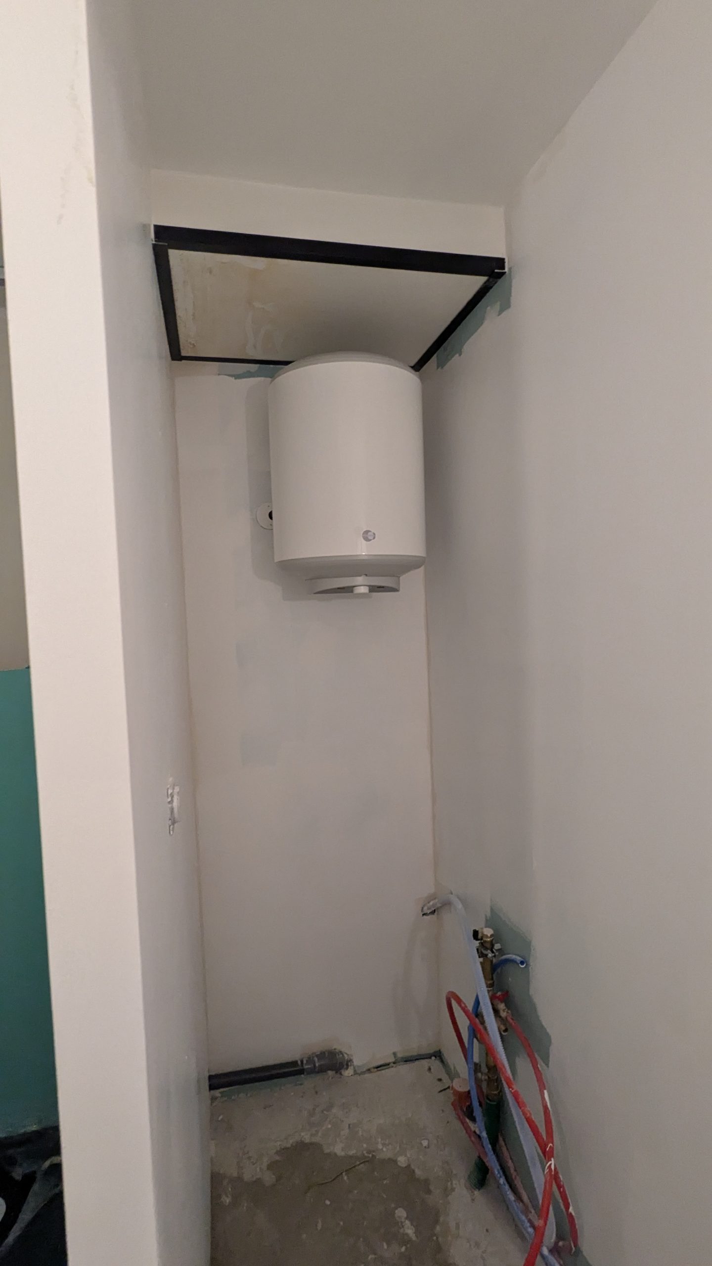 Peinture au plafond (1 couche) + Pose des toilettes (sans chasse d’eau) + Pose du cumulus (branchement électrique) + Pose du bac de douche