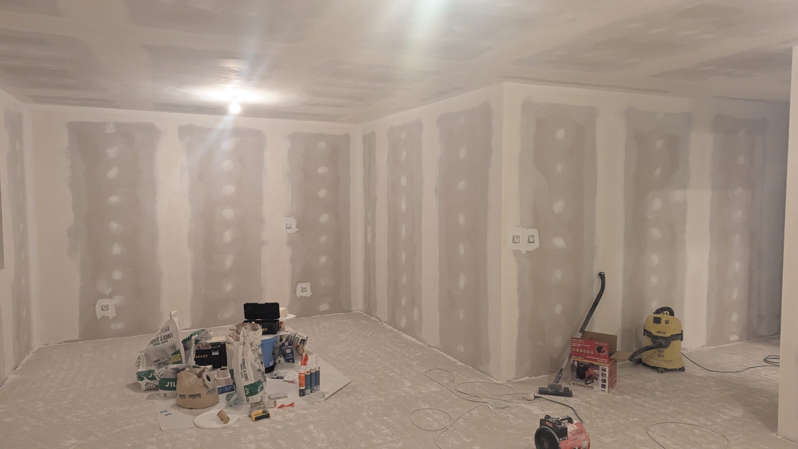 Journée physique, maintenant les murs et le plafond sont prêts pour la peinture, prévue pour lundi et mardi prochain.